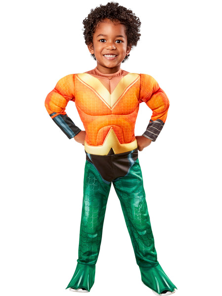 Hit the high seas with some action-packed fun this year when your baby is wearing this DC League of Super Pets Aquaman Costume for Toddlers! The king of Atlantis is ready for whatever the world throws at them with this comfortable and cuddly version of the Aquaman suit that includes a padded jumpsuit and attached boot tops. This costume is perfect for all kinds of costume events, movie watch parties or just everyday play time!