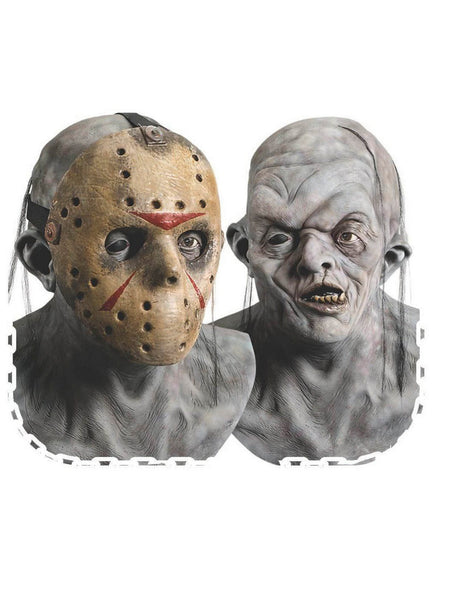 Freak out your friends with the Deluxe Adult Jason Overhead Latex Mask with Removable Hockey Mask. This mask has two looks in one. In the famous Friday the 13th movies, Jason hides his disfigured face with an old Hockey mask. Stalk around the party with or without the hockey mask, making the look even more scary. Right from the movies, this look is killer! Order your Jason mask today!