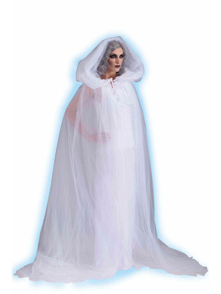 They say she hasn?t been seen in decades and the mansion is haunted by a ghost! Perhaps wearing the Women's Pale Specter Costume will get you into character to scare off any unwanted visitors. Whether a bunch of curious kids poking around or some traveling salesperson is annoying, wear this outfit to keep them away for good! You receive an entirely white dress to wear. Over top of that comes a matching white cape. It has an attached hood and ties along front. Having both pieces gives you an intimidating appearance. The size and sheer blinding color will have anyone frozen in fear. Have this Pale Specter costume ready for any unsuspecting visitors on Halloween night. Or come up with other creative uses such as cosplay events as various characters! Be sure to complete your look using makeup kits and other accessories to give yourself a ghoulish appearance to match.