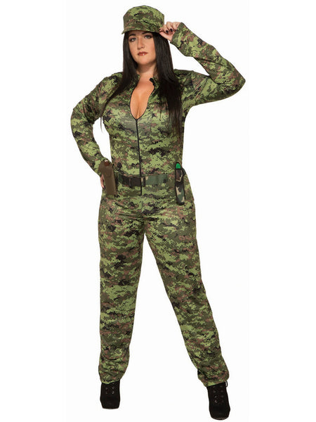 Sexy Adult Army Jumpsuit And Hat - Plus