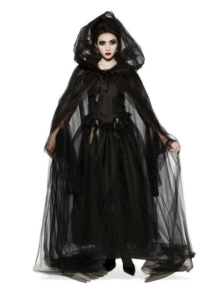 Your dark, mysterious look on Halloween will get an extra dose of magnetism with this amazing Hooded Black Cape Costume Accessory! The rich, elaborate material in this awesome Hooded Black Cape Costume Accessory offers complete concealment if you so choose! Hide and spook you're the Halloween partygoers with this Hooded Black Cape Costume Accessory!
