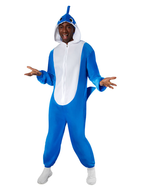 You'll be singing along with your tiny tot all day long this year when you're wearing our Adult Daddy Shark Zipsters Costume! With this set, you will receive everything you need to become the most musical shark in the ocean. Featuring a blue hooded shark fin jumpsuit with a white torso, you're going to love sharing some Baby Shark music and joy to everyone you see while wearing this one. The convenient front zipper makes putting on and taking off the costume a breeze, while maintaining a secure cozy and comfortable fit throughout any event. Pick up your costume today and then scan our site for matching Baby Shark costumes for your child and the rest of the fam!