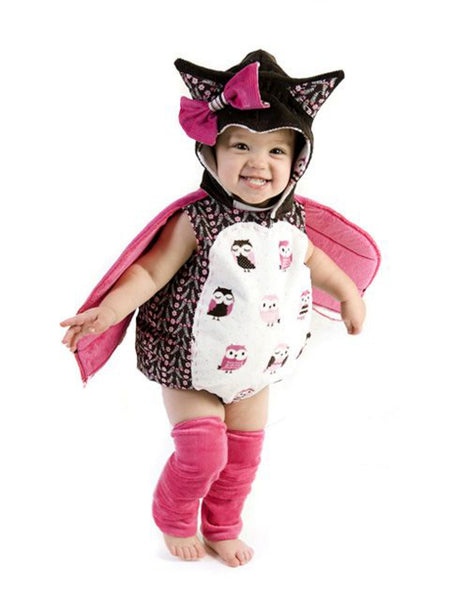 When you stay up all night, you have plenty of time to pick out your outfits! Be the most fabulous bird around with this Infant Toddler Emily the Owl Costume. Each set starts with its thick bubble body base. Dark brown fabric full of flowers makes up the body of the romper, giving it a girly edge. The white belly is decorated with several different owls. Fasten it up the back and you'll have a pair of bright pink wings to fly away on! The included hood has tall ears so you can listen out for delicious mice running around. The pink bow accent matches the included pink legwarmers. Pull them on and party all night! Your momma already jokes that you're nocturnal. Wear an Infant Toddler Emily the Owl Costume and show her why! Add on a bodysuit, flats, and a Halloween tote back (sold here) to be fully-prepared for trick-or-treating.