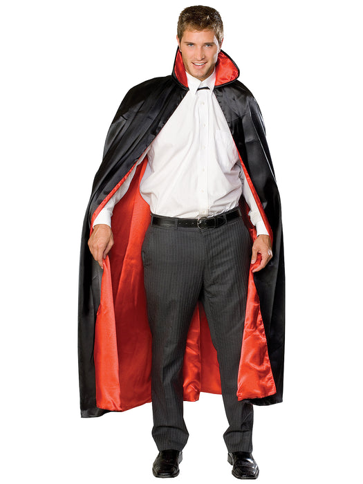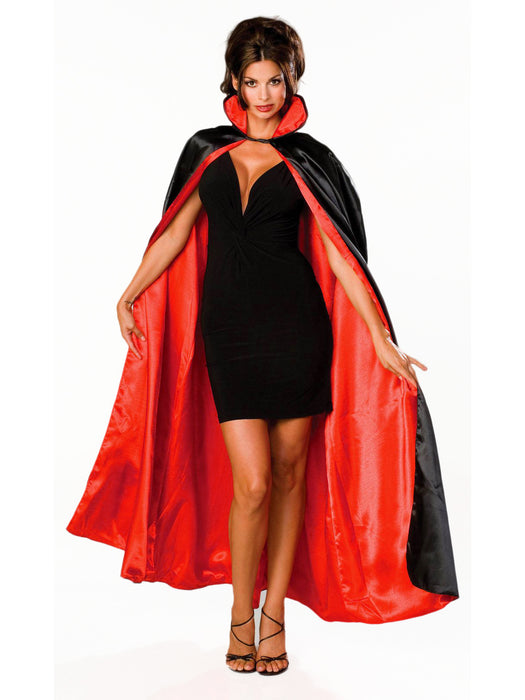 • Seductive vampires, secretive witches, and all manner of creatures of the night will love the sinister flair of this Long Black Satin Cape. Red on one side and black on the other, this high-collared cape makes the perfect addition to a wide range of Halloween costumes. Get it fast when you order online!