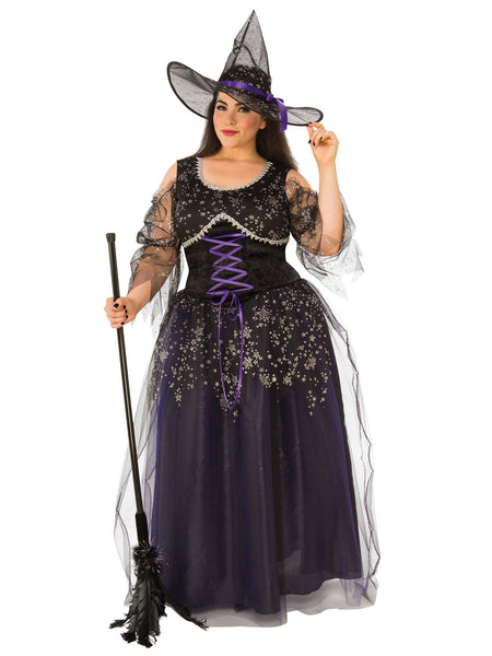 A proper witch always knows that flying around daytime is a very bad idea. Not only is she sticking out like a sore thumb, but how powers and spells might not reach their full limit and potential. This is why all effective and proper witches fly during midnight, or night in general! Introducing the Midnight Witch Curvy Costume. Grab you mystical broom, and fly through the night as a midnight witch and cause misdeeds and mischief to everyone. I perfect costume to celebrate Halloween in, you'll blend in at any party! Everyone will think that you are just a regular person wearing a witch costume who is there to have some fun. But boy are they wrong! Prove to others who you really are by catching them off guard, and demonstrating some of your most effective spells, curses, and techniques! Also, be sure to practice your best witch laugh to really get in character and look like the real deal.