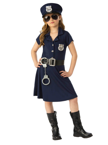 If your daughter loves cop dramas, yelling "freeze!" at imaginary bad guys, and plays coffee and donut party instead of tea party then this Kid's Police Girl Costume may be for her. Whether she uses it for Halloween or wears it every weekend as part of her crime stopping routine is up to her. But she will get everything she needs to make it happen including a policewoman's hat, authentic looking badge, a police belt, and a policewoman's uniformed dress!