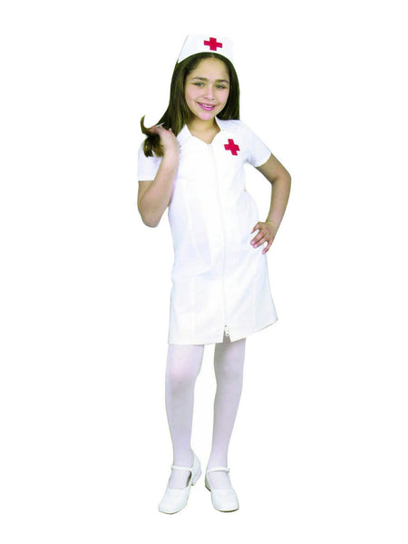 Your little one will be ready to tend to patients and heal the sick this Halloween when you pick up our Nurse Costume for Girls. With your purchase, you will receive a pretty white nurse dress with blue trim, as well as a matching white nurse hat with a red cross at the front. When your daughter goes trick or treating with this hospital get-up on, she will feel just like a town hero. Buy your nurse girl costume today, and go make this Halloween a healing one!
