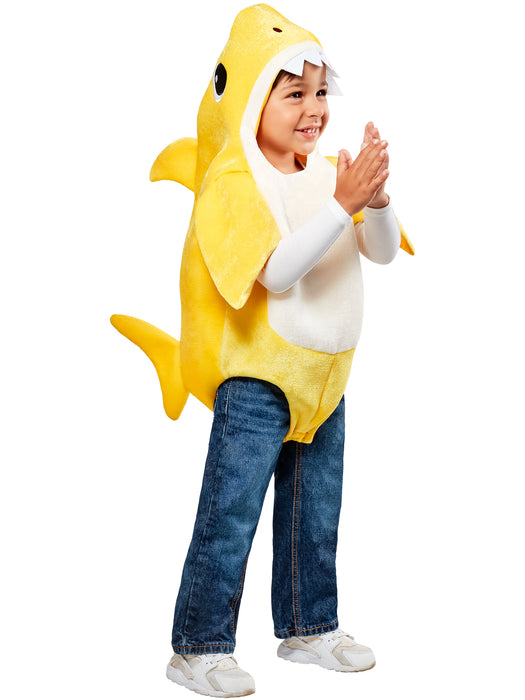 • Let your kid transform themselves into a bonafide YouTube sensation over night with this Kid's Baby Shark - Baby Shark Costume. It comes as a yellow shark romper but has a feature that you'll be hard pressed to find in any other Baby Shark costume. This one includes a sound chip loaded with clips of the Baby Shark song! That's right, not only can your kid walk the walk, but this costume will talk the talk!