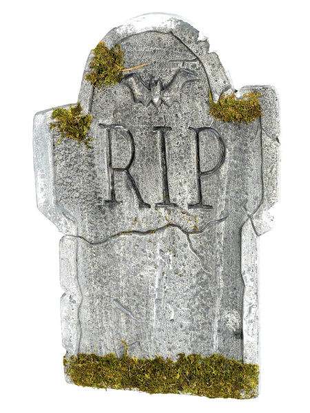 This tombstone is so old, it has stuff growing on it! Get this 22 Mossy Bat RIP Tombstone to show the irony of a living thing thriving next to something that has deceased. Green moss is shown across the bottom of the stone and patches of it are shown growing near the top. The gray stone appears cracked, etched with the letters RIP and the outline of a bat. Place this piece in your home to spruce up your haunted house or put it out on your lawn for the grass to blend in and really creepy out your guests!