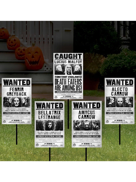 If you're a fan of the Harry Potter series, you know that some of the most exciting moments in the story happened when the characters were on the run from the law. Now, with our 17-inch Harry Potter Wanted Signs Lawn Decoration, you can bring that excitement to your own front yard! This set includes signs featuring the faces of Bellatrix Lestrange, Lucius Malfoy, Fenrir Greyback and other notorious wizards once on the run from the Ministry of Magic. Putting them up in your yard will look like you're part of the action. These signs are perfect for Halloween or Harry Potter themed parties, where you can use them to create a magical atmosphere that will transport your guests straight to Hogwarts. The signs are made from durable materials that can withstand the elements, so you can use them year after year. Get your set today and start creating your very own Harry Potter adventure!