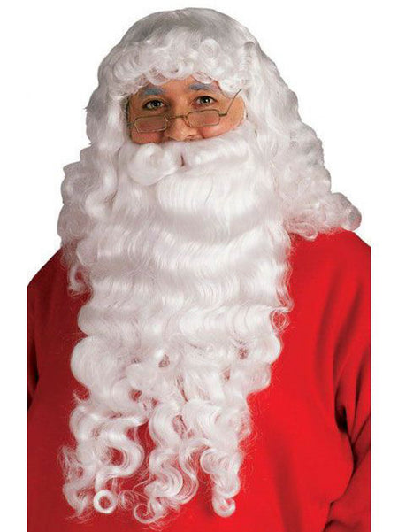Men's White Santa Beard And Wig Set - Super Deluxe