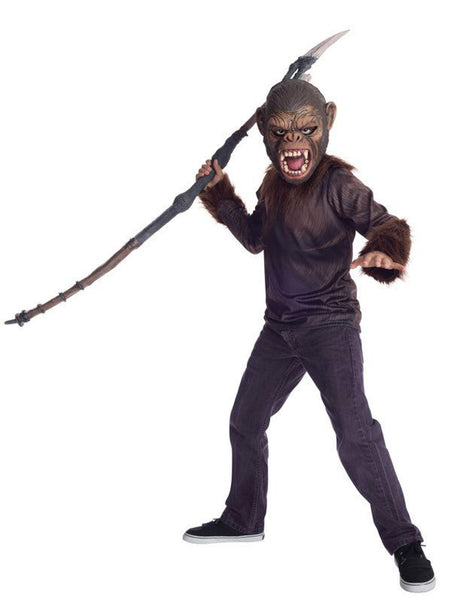 Lead all ape-kind to peaceful times dressed in the Boys Classic Caesar Costume. Caesar is the de facto leader of the apes and does not seek fights with humans. However, they will defend themselves if provoked. This outfit is based on Caesar's appearance in War for the Planet of the Apes, which is the latest in the long running series. It comes as a shirt top to look like a chimp along with a matching mask. This is an excellent set to have for Halloween parties, cosplay conventions, and other themed events. Search our selection of toy weapons and other props to include.