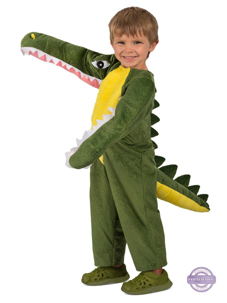 Living in the swamp isn't always easy or a pleasant experience. For one, there are numerous insects and mosquitoes flying around, trying to annoy you. Then there are leeches who lurk in the water, and will attach themselves to people and suck their blood. And of course, you got crocodiles who stalk their prey, and then jump out to hiss and drag them underwater. Crocodiles may be frightening animals, but they are certainly interesting ones. The way the live, defend themselves, and generally behave is something truly fascinating. Maybe your son enjoys reading about and studying crocodiles? In that case, this costume is ideal for him and his interests. Introducing the Chompin' Crocodile Costume for Boys. Lurk in swamp plants, or partially underwater, and strike when others least suspect. Or, try to really impress other people by telling them some of the facts that you may know about crocodiles, and what they do! A person dressed as a crocodile talking about crocodiles? When does the fun