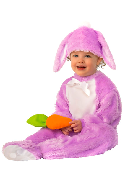 Whether you're dressing your little one up for Halloween or Easter, you definitely don't want to miss out on our Baby/Toddler Lavender Bunny Costume! With your purchase, you will receive everything you need to make this holiday a truly hop hop hoppin' one for your little cutie. Complete with a furry lavender jumpsuit with a white belly, as well as a matching bunny ears hood, you can't go wrong with this one.