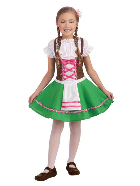 Your little one will feel like she just walked into a fairytale when you dress her up in the Gretel Girls Costume for Halloween this year! With your purchase, you will receive a pretty brown, green, pink, and white dirndl dress with an attached apron. Team up with Hansel and go take on the wicked candy witch this Halloween all while wearing this fun costume. Buy yours today, and then scan our site for the rest of your costume and accessory needs!