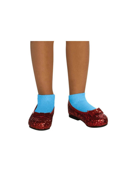 Travel down the Yellow Brick Road wearing the right shoes. The Child Deluxe Dorothy Wizard of Oz Ruby Red Glitter Shoes feature a glitter design with bow tie accent. Pair your Dorothy costume with these shoes to complete the look.