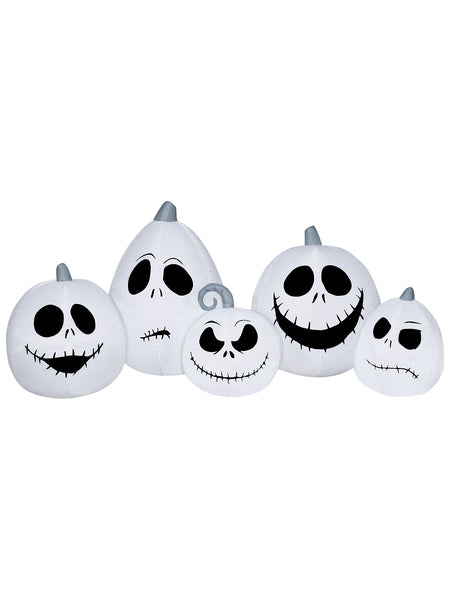 Get ready for the spookiest Halloween ever when you pick up our 7.5 Foot The Nightmare Before Christmas Jack Skellington Pumpkin Faces Light Up Halloween Inflatable Lawn Decoration! This unique decoration will bring the magic of Nightmare Before Christmas right to your home. You'll be amazed by the 5 white inflatable Jack Skellington-like pumpkin faces that light up, and you'll love the included yard stakes, rope, and heavy duty fan that make assembly easy as can be. Get this one-of-a-kind Halloween decor today and your house will be the envy of the neighborhood come trick-or-treat time!