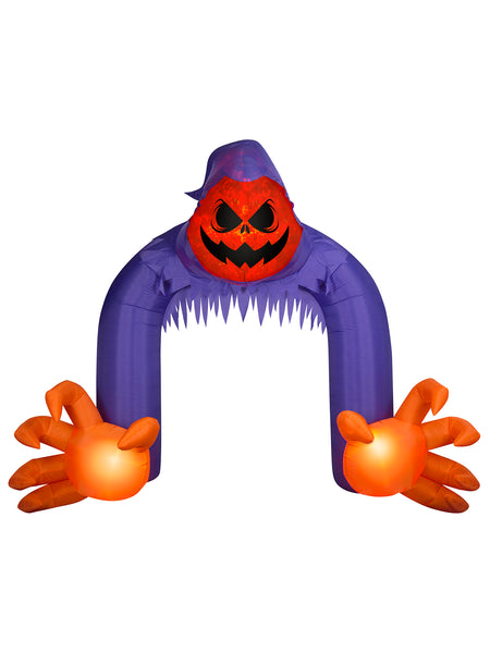 It will take a daring soul to enter your yard when you have this 10 Foot Reaper Archway Kaleidoscope Projection Light Up Halloween Inflatable Lawn Decoration! This inflatable archway is the perfect way to turn your home into a spooky haunted house this Halloween! Self-inflating in seconds, this airblown inflatable creates a truly eerie atmosphere in your yard. The archway is purple with big, orange hands at the bases and there is a jack-o-lantern head at the top with built-in Kaleidoscope projection lights that are sure to send chills down any trick-or-treater's spine. This inflatable decoration will take your Halloween yard decorations to the next level!