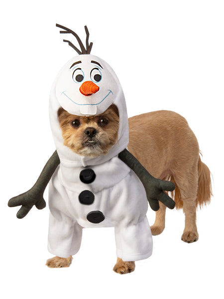 Your pup will be looking absolutely adorable this year when you dress them up with our Frozen Olaf Walking Pet Costume. With this set, you will receive everything you need to turn your furry friend into the cutest snowman to ever wag their tail and eat snow. Featuring a white step-in snowman suit with black buttons and attached arms as well as a matching Olaf headpiece, you can't go wrong with this special look! Imagine the joy and laughter your furry companion will bring to every gathering and outing as they strut their stuff in this charming getup. Whether it's a winter stroll in the park, a themed pet party, or even just a cozy evening by the fireplace, your pet's cuteness factor will be off the charts in their Frozen-inspired attire. This Frozen Olaf Walking Pet Costume isn't just about fun and frivolity; it's an opportunity to create lasting memories with your four-legged family member. Capture the hearts of everyone you meet as your pet embodies the whimsy of the Frozen universe. Why wait? Don't miss the chance to make your pet the star of the show this year! Order the Frozen Olaf Walking Pet Costume today and embark on a winter adventure filled with warmth, laughter, and the undeniable charm of your furry companion. Be ready to turn heads and make cherished memories with your pet in their adorable Frozen attire.