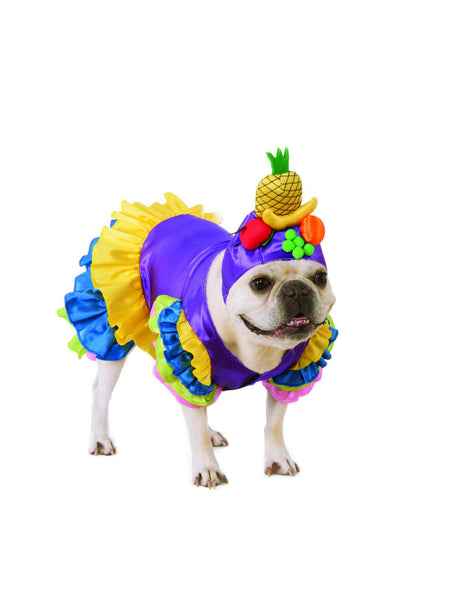 The Brazilian Bombshell Costume for Pets is an iconic ensemble ? for your pet! This purple, yellow, and blue ruffled ensemble includes a matching purple headpiece festooned with all your favorite fruits. Pineapples, bananas, grapes ? it's all here! Shop for costumes and accessories for pets online today.