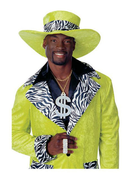 Pimp's up and Ho's down. Bring together your outfit with the universal sign of the masters of currency, our Pimp Dollar Sign Necklace. It's a bold and gaudy chain that's perfect for joking around and tying together a hilarious attire. Make it apart of your pimp suit to make sure that the joke sails home and you bring in the most laughs.