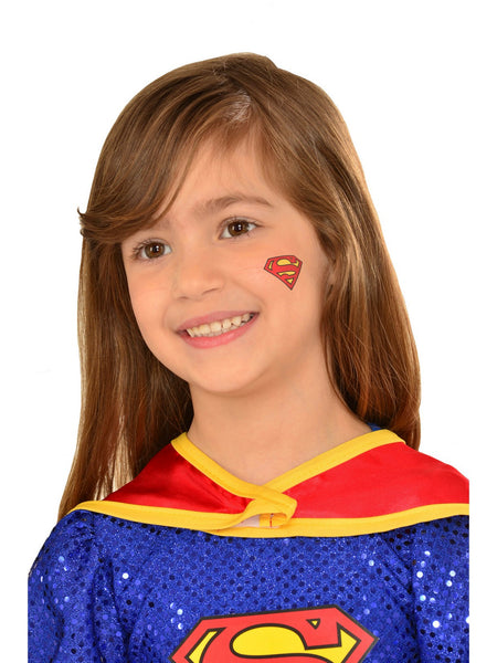 Let your child join the house of El when she puts on the Supergirl Stick-on Tattoo. It features the iconic Superman logo. It may look like an S, but it is really the crest of the House of El, the Kryptonian family of Kar Zor-El , aka Supergirl, and Kal El, aka Superman.