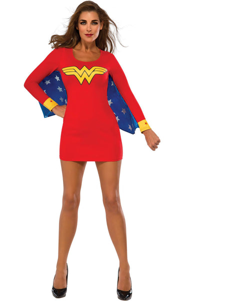 "What one does when faced with the truth is more difficult than you think." Defend the world fro war and evil in your Sexy Wonder Woman Cape Dress Costume. Be as tough as you are beautiful as the world's most famous superheroine. Use your Lasso of Truth and Bracelets of Submission to save the day. Buy your Sexy Wonder Woman Cape Dress Costume online today!