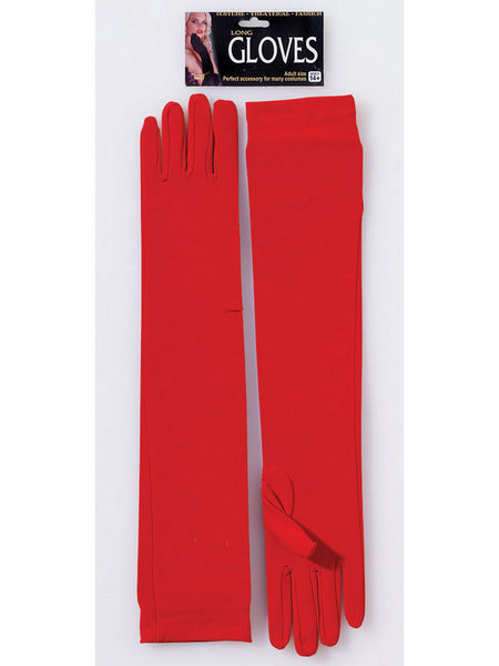 Women's Red Long Nylon Gloves