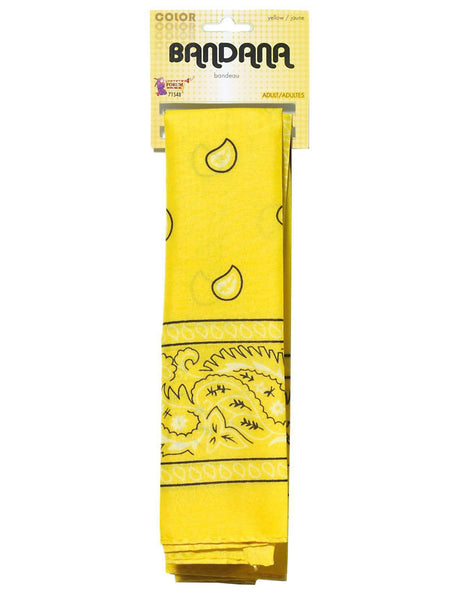Bring some color to the ranch when you slip a Yellow Bandana around your neck! Each piece is made out of lightweight cotton and is decorated with paisley print. A must-have for any cowboy costume, college game, or Halloween bash.