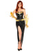 • You'll be showing all the villains and criminals who's boss this year when you show up to the party wearing our Adult DC Comics Batgirl Costume. With this set, you will receive everything you need to become the most stunning superhero to ever walk the streets of Gotham. Featuring a gorgeous sleek black dress with a gold Bat logo on the chest, a pair of matching spiked gold gauntlets, and a golden belt, you're not going to want to miss out on this little number.