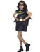 • Superheroes have a tendency to kick a lot of butt. They have a way of being tough and having all the right moves to get the job done. Make sure that your little girl gets the chance to play along as her favorite hero and look better than ever thanks to our Girl's Batgirl Sequin Costume. It comes with everything that she needs to look the part of her favorite hero and look amazing doing it! Comes with a beautiful sequined dress that has the official Batgirl applique front and center! The dress has an attached frilled skirt that accents her girly style just right! She wouldn't be a hero by revealing her identity, so make sure that she puts on the included eye mask that will contain her identity as long as she can keep it on! Stop by the store and add on a pair of fashionable shoes that will highlight your little girl's martial prowess! You'll love how great she feels thanks to our Girl's Batgirl Sequin Costume.