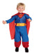 • Lex Luthor stole 40 cakes. That's as many as four tens. And that's terrible. Sit down to read the Super Dictionary once you have on this Superman Infant/Toddler Costume! This soft jumpsuit has long sleeves and pants, its blue fleece body perfect for soaring into space. Your logo sits on the chest in a soft red and yellow patch to let Metropolis know who their savior is. The yellow belt around your waist matches. Red cuffs sewn into the bottom of the suit stand in for the boot tops, letting you wear whichever of your favorite crime-fighting sneakers you would like. Speed after Zod and your long red cape will billow behind you! The top fastens around your neck. You're going to grow up big and strong one day, but you're still learning your Ps and Qs right now. Suit up in your Superman Infant/Toddler Costume and go recite those ABCs!