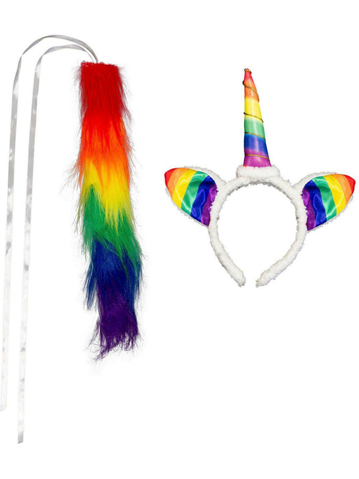 • Youre going to have everything you need to become a magical creature of purity and innocence when you have on our Rainbow Unicorn Costume Kit! This kit has all the accessories youre going to need to gain the purity of a unicorn on Halloween, so you can use your magic to heal others and bless people with your good heart! Youre going to be the talk of the Halloween party when you have this tail and horn to stylize your unicorn costume!
