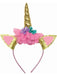 • Looking for the perfect headpiece for your unicorn costume this year? Then look no further than our Unicorn Headband Accessory. With this one, you will receive just the magical accessory you need to let the whole world know that you're rarer than rare. Featuring a gorgeous pink headband adorned with golden sparkling ears, pink floral fabric, a teal and purple flower accent, and a golden spiraling horn, you definitely don't want to miss out on this one.