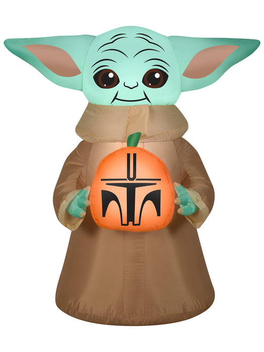 • If you want to create an October party that has a touch of science-fiction, the 3.5 Ft. Airblown Inflatable Star Wars The Child & Pumpkin is the pickup that you need. It's a lot bigger than The Child really is, but it's still not that large. Yet who wouldn't want to go to a party with this friendly face he even has a Mandalorian jack-o-lantern. The internal LED lights him up to make sure nobody misses this cute character.