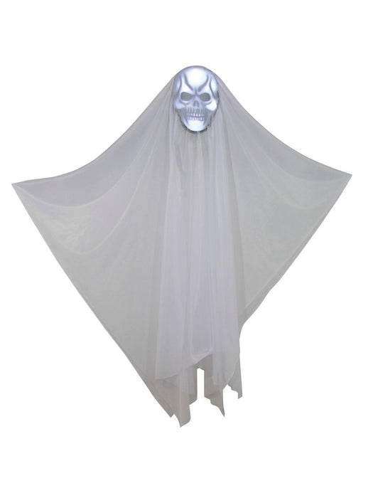• Searching for a sinister skull to add to your Halloween display?s creepiness? You?ll have the spookiest house on the block when you hang the 60? Hidden Face Light Up Skull Prop on your porch! This grinning white skull wears a flowing white robe and looks as if it?s ready to come after the next person it sees. Your neighbors won?t have the guts to come anywhere near this sinister skull.