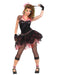 Calling all material girls and boy toys, this 80s Diva Adult Costume is the ultimate ensemble for all ladies of the 80s! Whether you're trying to get backstage at a hair metal concert or goofing off in the mall in the Valley, this outfit that includes a dress, leggings, glovelettes, and a chain belt will help you do it in totally awesome 80s style. The black dress features soft pink polka dot accents on the shoulders and bust, as well as a pink underlayer on the gathered skirt. Inspired by the fashions popularized by icons like Madonna, this dress is tight in the bodice with a short voluminous skirt. The black leggings and polka dot trimmed lace gloves help you achieve the ultra trendy street urchin look. Enhance your outfit with jewelry and hair accessories available separately on our website. Even if you aren't lucky enough to remember the 80s, you're going to love dancing to new wave and synth pop like it's 1985 in this 80s Diva Costume for Adults!