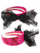 • Really have fun like girls want to and dress the part while you're doing so with this 80's Lace Headband with Bow. You'll look like you stepped out of an 80's teen pop video wearing this floral embroidered, lace fuchsia headband with an over-sized black bow attached to the front.