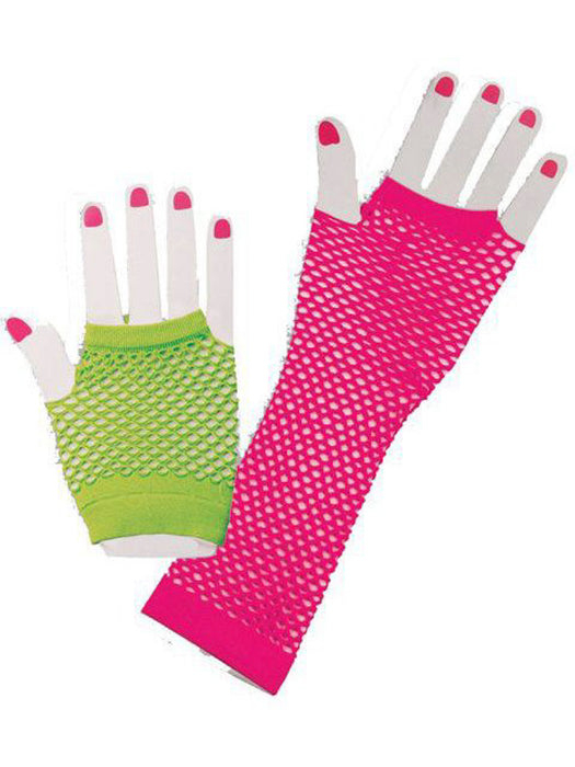 Women's Neon 1980's Fishnet Glove Set