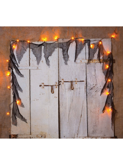 Unleash the spirit of Halloween with our one-of-a-kind 9 Foot Orange LED String Lights with Gauze! Designed to drape your indoor space in an eerie, spectral glow, these lights are perfect for transforming any setting into a haunted haven. Wrapped in tattered, ghostly gauze, these portable lights add an extra layer of spine-chilling sophistication, ensuring your Halloween decor stands out. Whether you’re setting the scene for a haunted house, a spooky party, or simply want to create a macabre atmosphere, these lights are your go-to choice for a truly terrifying display. Battery-operated and requiring just 3 AAA batteries (not included), these lights are easy to place anywhere indoors without worrying about power outlets. Make your Halloween unforgettable with a decoration that brings a unique and creepy twist to your festivities. The combination of bright orange LEDs and ghostly gauze creates a hauntingly beautiful display that will captivate and terrify all who see it. The portable design allows you to place these lights in the spookiest corners of your home or yard, ensuring no space is left untouched by the eerie glow. Don’t miss out on adding a truly unique and frightening touch to your Halloween decor. Click 'Add to Cart' now and let our 9 Foot Orange LED String Lights with Gauze fill your space with an unforgettable spectral glow. Create a spine-chilling atmosphere that will leave your guests haunted long after they’ve gone!
