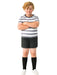 • Let your little one bring the quirky charm of the Addams Family to life with the Boys' Pugsley Costume! This officially inspired outfit includes a classic striped romper with an attached stuffed belly for Pugsley’s signature look, plus matching socks to complete the ensemble. Designed for comfort and easy wear, this playful costume captures the essence of the mischievous and lovable Addams sibling. Whether he’s trick-or-treating, posing for family photos, or starring in a spooky school play, this Pugsley costume is a must-have for Halloween and costume parties alike. Perfectly kooky, effortlessly fun—just like the Addams Family!