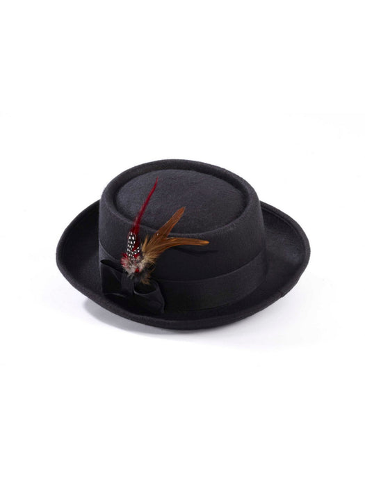 Adult Black Pork Pie Hat with Feather