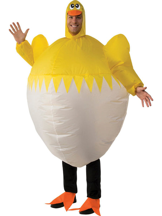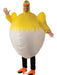 • What's the most amusing costume at the Halloween party? Your Chick Inflatable Adult Costume! You'll peep out of this giant, cracked egg, as an innocent, goofy chick! Watch out the snack table, especially if deviled eggs are being served! Enjoy plenty of wholesome fun in this Chick Inflatable Unisex Adult Costume on Halloween!