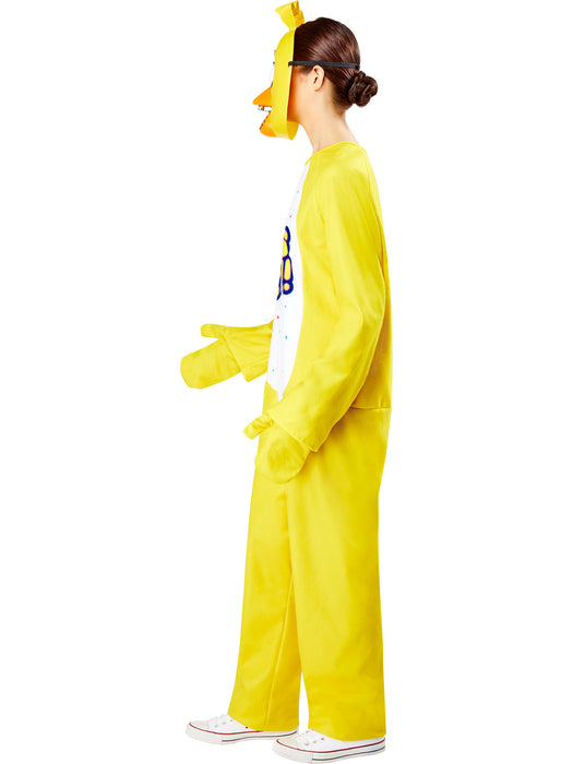 You'll be all ready to shake your maracas and provide backup vocals to Freddy Fazbear this year when you're all dolled up in our Adult Five Nights at Freddy's Movie Chica Costume with Mask. While Chica may look like a cute and cuddly animatronic bird during the daytime, when the lights go out and the doors get locked, a much different beast of a bird emerges. Patrol the pizzeria in search of humans and innocent victims you can feast on. As Chica, you are not just some fleeting harmless bird.