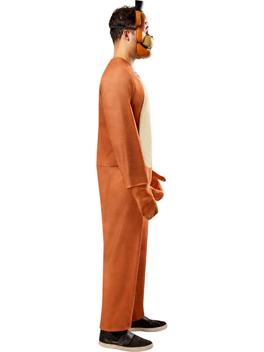 Head to the party dressed as your favorite animatronic singer this year when you get all decked out in our Adult Five Nights at Freddy's Movie Freddy Costume with Mask. Whether you're up on stage entertaining the kids with your music or going on a human feeding frenzy later at night once the pizzeria is closed, you'll have the time of your life sporting this killer animal wear. Perfect for a group costume theme with friends, you'll be wreaking havoc with Bonnie, Foxy, and Chica right alongside you this year