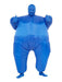 • You're round, cover plenty of ground, and will be a delightful sound when you roll into a room. When you wear this chic Adult Inflatable Blue Jumpsuit you'll be the highlight of your party. With a zip up suit with a fan combo that requires four AA batteries (not included) you'll be ready to balloon up and be around the entire party! The costume comes with a mask that's made of breathable fabric so you don't have to worry about being uncomfortable and a matching set up gloves. This outfit pairs up great with other inflatable costumes, if you have a group of friends you can be a colorful posse waiting to roll around the shindig. Make sure you add on a color corresponding jumpsuit so you can stay in costume the entire party and keep it lit up. Make sure you keep the party from feeling blue in this Adult Inflatable Blue Jumpsuit.
