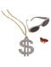 • Step up your costume game and channel a bold, unforgettable vibe with the Adult Pimp Kit Accessory! This must-have accessory set is perfect for anyone looking to add a little extra swagger and flair to their outfit. Includes a gold chain with a silver sparkly dollar sign attached, silver sparkly glasses, and a mouthpiece with one gold tooth. Ideal for themed events, Halloween, disco nights, and cosplay.