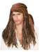 • If you still think your pirate costume needs a little something extra, buy the Caribbean Pirate Wig! The straight brown hair has thin beaded braids in the front. The wig also comes with a brown faux suede bandana attached to the top.