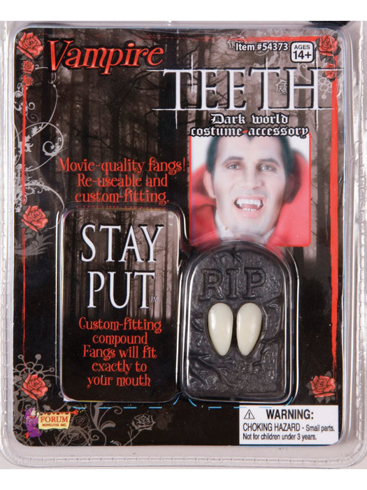 • If youre playing Count Dracula on Halloween, youre going to need our Adult Stage Fangs to make you look extra ferocious! Pair these fangs with some fake blood and youre going to have everything you need to feed on your hapless victims this year. Get ready for your hunt to be more fruitful than usual when you have these fangs completing your vampire costume, though you might want to stay away from anyone wielding a stake!