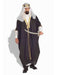 • The Men's Arab Sheik Costume consists of a three piece set. The dark brown robe featured a golden trim on the chest and down the middle, adding intricate detail. The robe is able to fit most adult male sizes. The costume also includes a headpiece with a mock gold jeweled ring and a white underrobe. All three pieces included in the costume set are made from one hundred percent polyester.